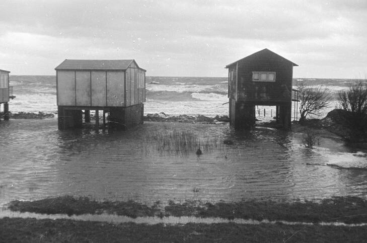 Oversvømmelse ved Gyldensteen på Nordfyn, januar 1954